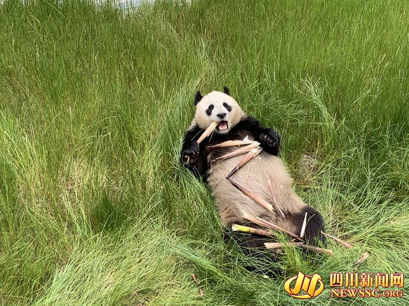 四川新闻网阿坝6月24日讯(记者 文骥 摄影报道)日前,倍受关注的九寨沟大熊猫园正式开园了!园区内,四只憨态可掬的大熊猫分别叫“小礼物”“海海”“新新”“天天”。2019年10月31日,它们分别从中国大熊猫保护研究中心四川雅安碧峰峡基地和都江堰基地出发,经过长途跋涉,来到九寨安家落户。