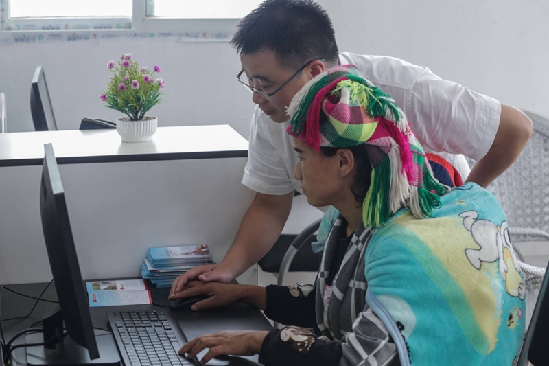 乡里开展电商培训,郑伟指导贫困户操作电脑