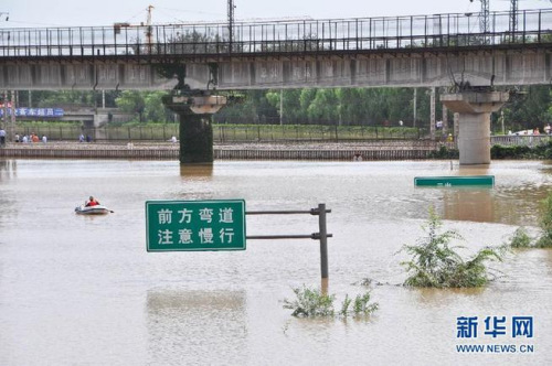 据中国之声《新闻纵横》报道,21日的强降水,导致京港澳高速公路出京方向17.5公里处的南岗洼铁路桥下严重积水,水深平均4米,最深处达到6米,数十辆汽车被淹,上百人的生命受到威胁。