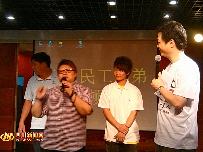 四川籍农民工陈晓伟、张洪林上台讲述救人一幕