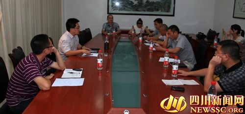 蓬溪县委常委、宣传部部长吴军与各部门研讨学习参与救援的民工精神
