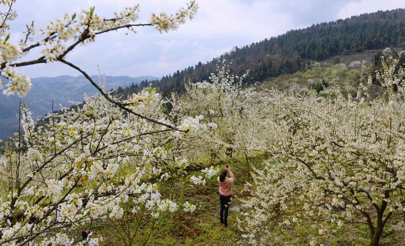 漫山梨花、李花美不胜收 记者还了解到,下周枣林村将迎来赏花的最好时机。届时,上千亩梨花、李花将更加绚丽地绽放,广大游客可带上家人、约上好友,共同前来赏花,同时,还能在当地农家乐享受特色餐饮。(古蔺县宣传部供图)