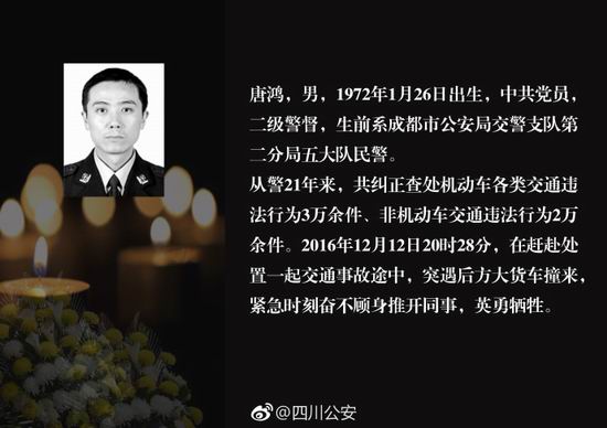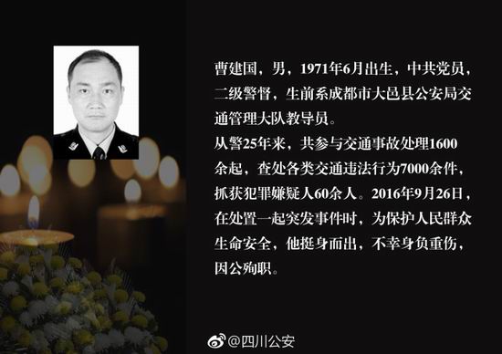 在刚刚过去的近一年时间内,就有12名民警牺牲。(图据省公安厅微博@四川公安)