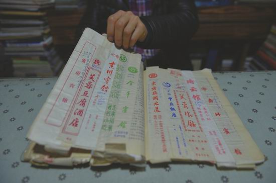 有一次,成都文化名人车辐清理出许多废弃的旧物,其中一部分书刊纸制品流落到旧货市场。这些署名有杨槐、苏东皮(车的笔名)等的书稿,被堆放在盐市口书市入口的一个电梯旁,无人理睬。“这就是缘分,其他人都不太清楚,但我晓得它是车老的东西。”傅天斌立刻花了300元,用编织袋一装,把所有纸片都背回了家。其中一个本子,里面粘贴的全是饭馆里装筷子的纸袋,上面是车辐记录的宴请时间、地点、菜单和花费等。郫县川菜博物馆的朋友收集文献时,得知他有这个本子,也是有意购入。但傅天斌告知对方,“这是一本兼具老先生交友录和川菜文化的东西,目前留着自己存用,等不用时找机会捐给川菜博物馆,不会用它来换银子。”