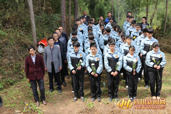 四川新闻网巴中4月4日讯(李朝维 龙红梅 记者 余开洋 摄影报道)“廖老师,您安息吧!明年高考后,我们全班一定拿着大学通知书再来看您。”今日下午,南江长赤中学廖远金老师的学生、同事及他的子女共30余人来到了南江县下两镇黄坪村廖远金老师的墓前祭拜。