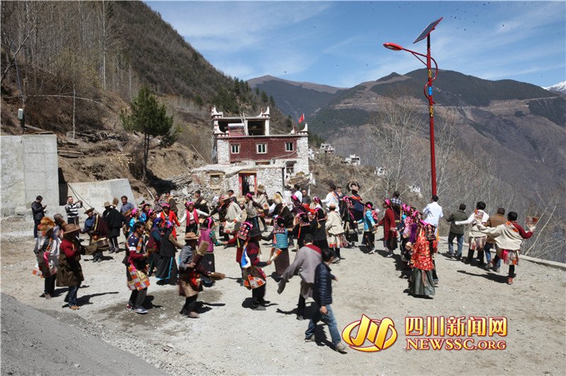 腊月山三村村民们在即将完工的活动场坝里欢快地跳着锅庄 四川新闻网成都4月6日讯(记者 仲健鸿 摄影报道)嘹亮的藏歌,欢快的锅庄……距离丹巴县城37公里的高山深处,穿着民族服饰的藏族男女老少们围成了圆圈,在即将完工的活动场坝里跳起了热情的锅庄,虽然跳得“尘土飞扬”,但每一个村民的脸上都洋溢出了幸福的笑容。村民们说:“以前从没想过会有这么宽敞的一块坝子!锅庄也从未跳得这么舒畅!” 丹巴县半扇门乡腊月山三村,坐落在重重叠叠的大山深处,山路陡峭险峻,自然灾害频发,受自然环境条件约束,交通不便,在丹巴县曾是出了名的“贫困村”。自2015年,四川省国土资源厅对腊月山三村开展定点帮扶以来,腊月山三村发生了大变化。截止到2016年底,省国土资源厅联系指导的丹巴县如期完成了22个贫困村退出,腊月山三村正是其中一个。近日,当四川新闻网记者走进腊月山三村时,村子里崭新气象扑面而来:水泥路通向家家户户,户户用上安全稳定的室内用电,即将完工的活动场坝欢声一片……处处呈现着生机和活力。