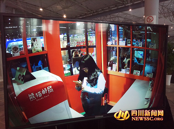四川新闻网记者在现场看到,熊猫邮局、竹艺编制、成都大学生广告创意大赛优秀作品展等都参加了展会。而在熊猫邮局的展位前,就有不少市民正在参与熊猫“留声明信片”活动,把自己想说的一段话生成二维码,印制在熊猫明信片上再寄出。