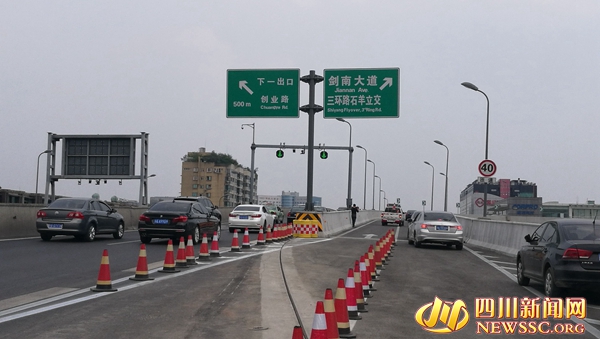 4、神仙树南路新建匝道落地点位于紫杉路,车辆可通过该上行匝道出城驶往剑南大道方向。