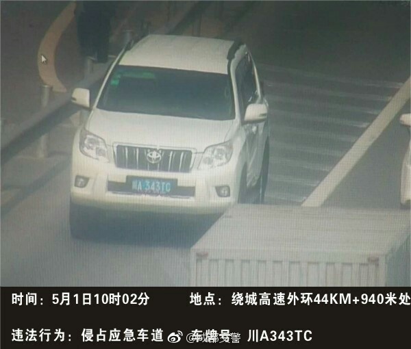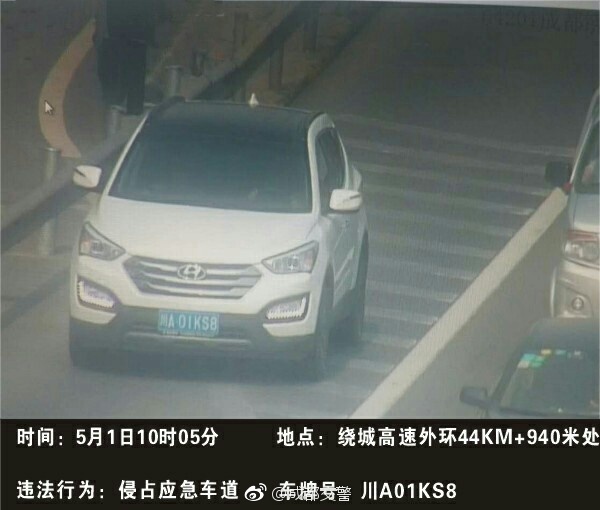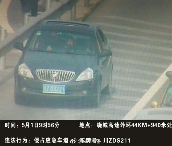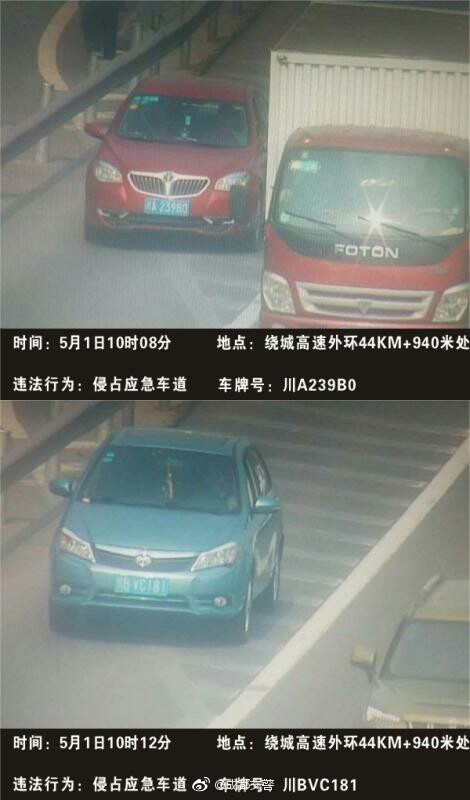 四川新闻网成都5月1日讯(记者 梁鹏)“五一”小长假以来,成都交警连续两日曝光了部分侵走应急车道的车辆。今(1)日是“五一”小长假的最后一天,成都交警再曝光10辆侵走应急车道的违法车辆。