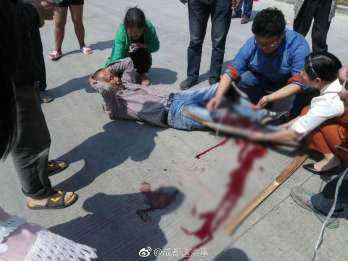 4月29日,烈日炎炎,在绵阳市三台县里程乡一道路上,一辆摩托车与拖拉机相撞,摩托车上的大爷受伤倒地。正在回家途中的成都医学院大一学生赖登龙见到后,立即上前和市民一同对其进行急救处理(右图)。“根据伤势,初步推断是骨折,我就采取了简单的急救措施帮他进行临时固定。”几分钟后,120救护车到了,医生向赖登龙询问止血情况后,将大爷抬上了救护车。