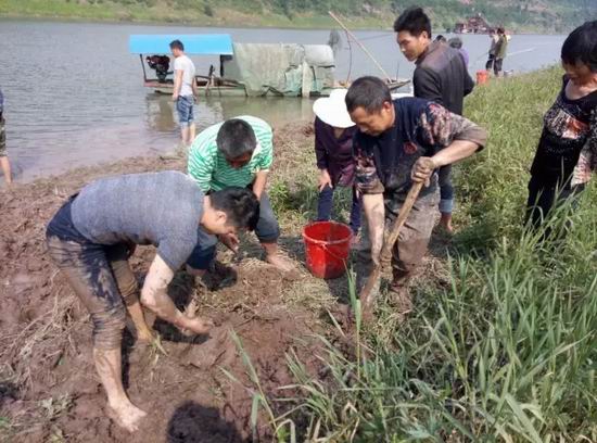市民捞黄鳝(图由“幸福渠县”提供 林夕秋 摄)