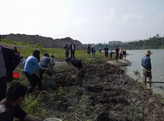 大量市民赶到河岸边捞黄鳝(图由“幸福渠县”提供 林夕秋 摄)