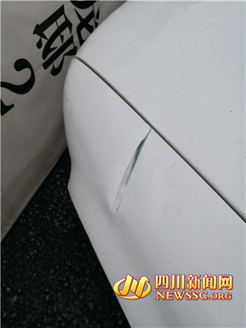 车被广告牌砸出的凹痕