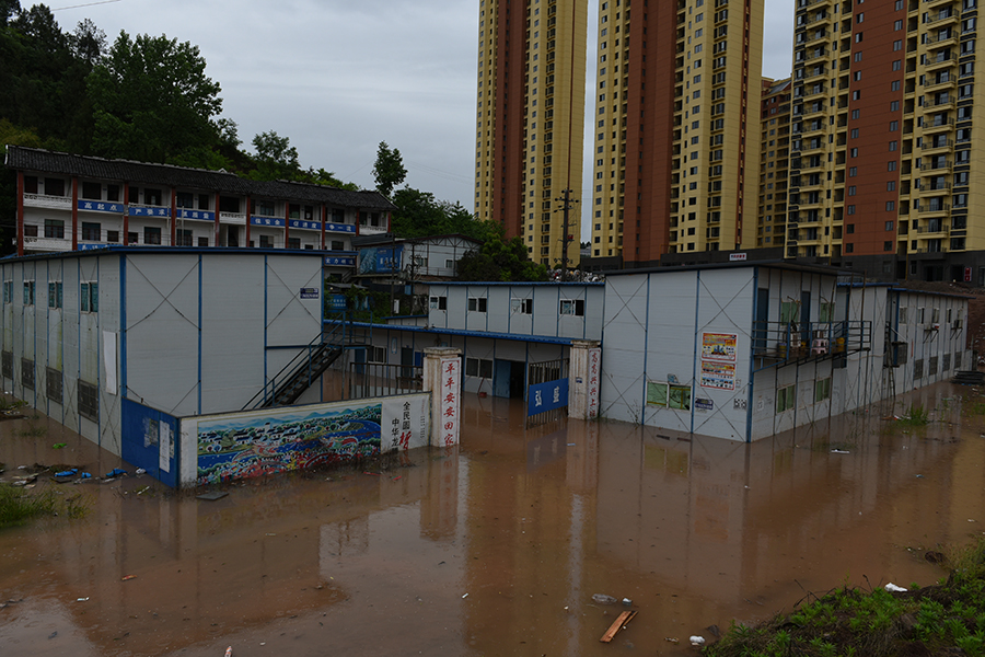 消防官兵到达现场后,发现该生活区位于路口处一下水道,不断有大量雨水冒出,水势较猛。加之天空不断下着雨,雨水不断向板房高处蔓延,板房住宅内不时传来求救声。“我正打算出门买菜,没想雨水吞没了出入口,不断向上涨,就莫法出去了。”一位工人大声告诉消防官兵。