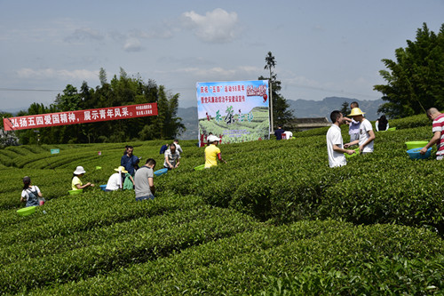 四川新闻网泸州5月4日讯(苏忠国 记者 熊强)5月4日,泸州市叙永县叙永镇红岩茶场热闹非凡。时值春茶采制的末期,泸州市叙永镇组织广大青年团员开展了一次采茶志愿服务活动,帮助农民抢摘春茶的同时,体验做一天采茶人的辛苦与乐趣。