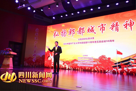 四川新闻网成都5月4日讯(记者 陈淋 摄影报道)5月4日上午,为纪念共青团建团95周年暨五四运动98周年,成都市郫都区团区委联合郫都区委组织部、区委宣传部、区直机关工委在西华大学艺术学院音乐厅举办“弘扬郫都城市精神”主题演讲比赛决赛,旨在进一步大力弘扬和践行“创新、开放、智慧、勤奋”的郫都城市精神。