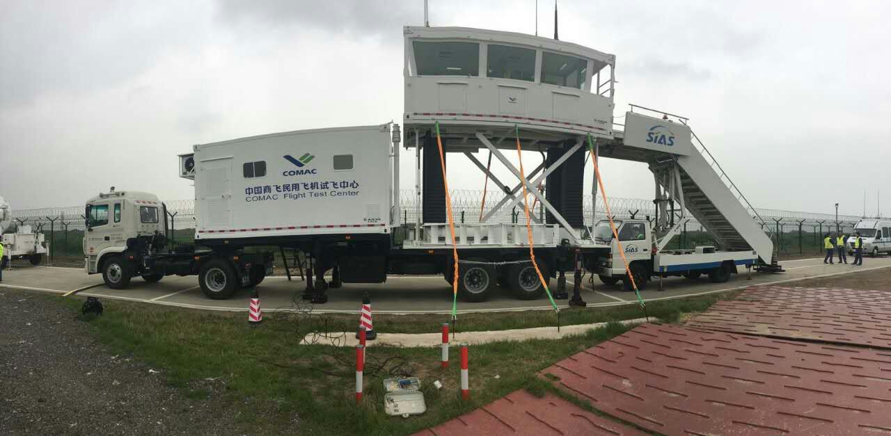 在试飞现场,一辆飞行指挥车引人注目,这正是来自四川绵阳的“九洲造”。据九洲集团负责人介绍,飞行指挥车能够迅速部署到任务区域,实现对试飞航空器的有效监视指挥,提高对各种飞行任务的监视、服务和管理能力,也可以实现对地面车辆、人员的指挥调度,具有灵活、机动、高可靠性,为C919的飞行发挥着重要作用。(图由九洲集团提供)
