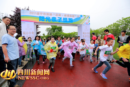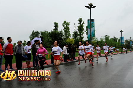 四川新闻网遂宁5月6日讯(记者 赵权军 摄影报道)5月6日上午,遂宁圣莲岛上飘起小雨,江面上刮起阵阵轻风,吹得游人瑟瑟发抖。来此参加马拉松赛的市民却热情高涨,都想在赛场上取得好成绩。上午8:30,遂宁市首届环圣莲岛迷你马拉松赛暨阳光亲子慢跑活动准时开跑,1000余人报名参加了本次迷你马拉松赛和亲子慢跑活动。