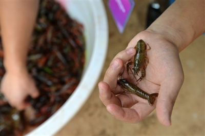 据何鹏介绍,培育小龙虾苗的苗种最初是从湖北潜江引进的“美国克氏原螯虾”,引进后一亩池塘按照母虾、公虾1:2的比例投放100斤左右的苗种,3个月后就会培育出小龙虾苗,一只母虾产卵量约200枚。