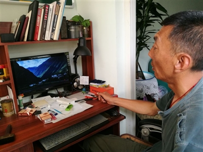 6月25日,成都市成华区一小区内,48岁的成都职业摄影师、新磨村松坪沟大酒店合伙人郝振荣(网名:地瓜)坐在的家中电脑前,整理着新磨村受灾前的照片。