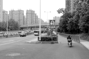 市民陈先生讲述了他最近遇到的一件事,“我当时开车从科华南路直行至三环路附近时,想掉头回至一环路。”陈先生告诉记者,当车行至三环立交桥时,他看到了一个交通标志牌,“立在出城方向辅道的最右边,说可以从桥下掉头。”陈先生说,标志牌的右边有一条宽约2—3米左右的匝道,向前看一直延伸到了立交桥上。“当时这条匝道上也没有车,我就开车上去了,但越开越不对劲。”他说,待车子顺着“匝道”开到立交桥上时,他傻眼了,“我把车开到了人行天桥上!”这才意识到,刚刚走的这条道路其实是非机动车道。