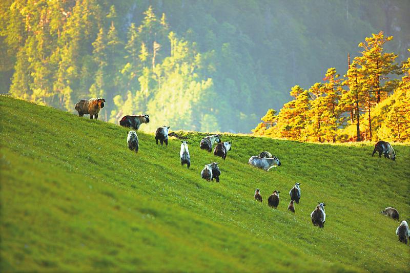 唐家河成群的扭角羚。奚志农 摄