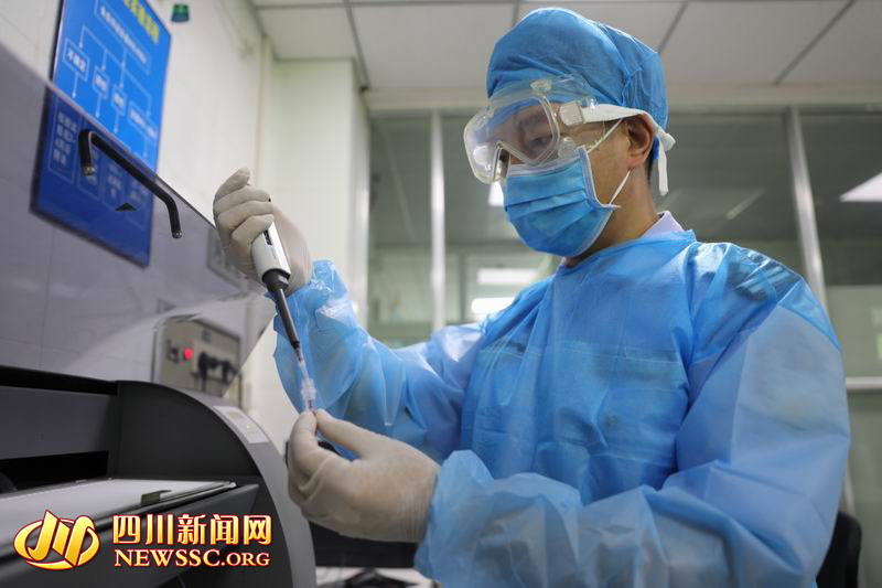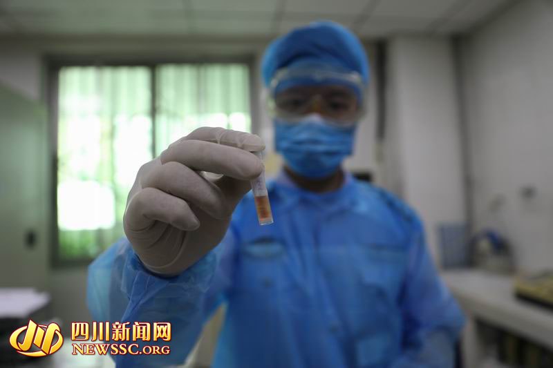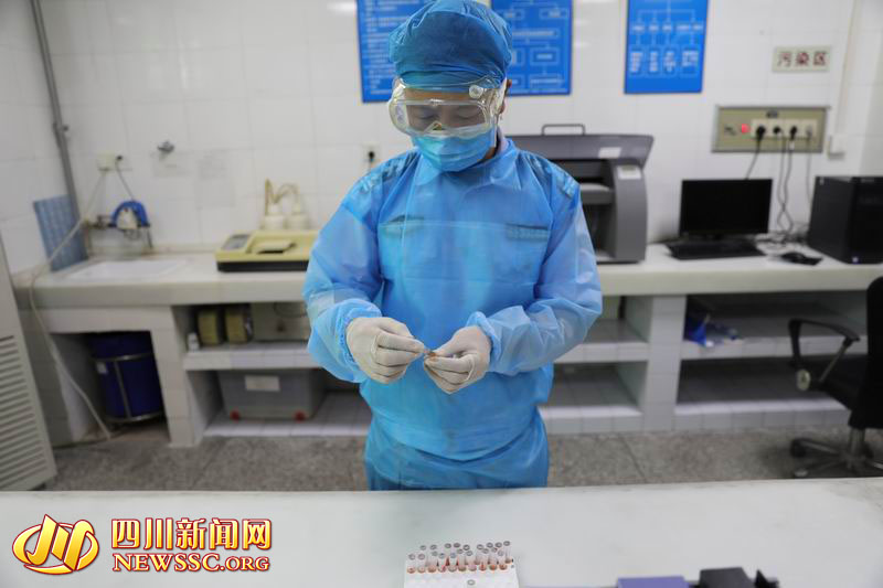 四川新闻网成都7月10日讯(记者 雷兹 摄影报道)实验室的空气中漂浮着消毒水的味道,许水良盯着艾滋病初筛血样,一脸严肃,防护装备将他包裹得严严实实。