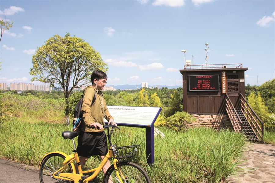 虽然室外温度很高,但也没能阻挡市民前来游玩的热情,专程从高新区过来的侯冠宇骑着共享单车,花了一下午时间在白鹭湾湿地逛了一圈,能看到如此美丽的景色,他很惊喜:“白鹭湾湿地就像是一个世外桃源,有青山绿水、花草树木,有亭台楼阁、鸟语花香,能生活在这里真的很幸福。”虽然才来成都不久,但侯冠宇却在这里找到了和家乡昆明一样美丽的地方,他希望自己能在这里长久居住下来。