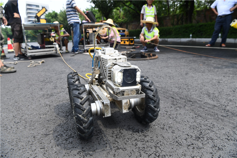 随着雨季来临,定期给管道“体检”显得尤为重要。8月初的一场强对流天气后,成都高新区城市管理和环境保护局(以下简称“成都高新区城管环保局”)水务处工作人员,与河道管道管护公司一道,第一时间赶到科园南路栏杆堰附近检查窨井。在这里,一种水下智能爬行机器人在排水管道检测中大显身手。