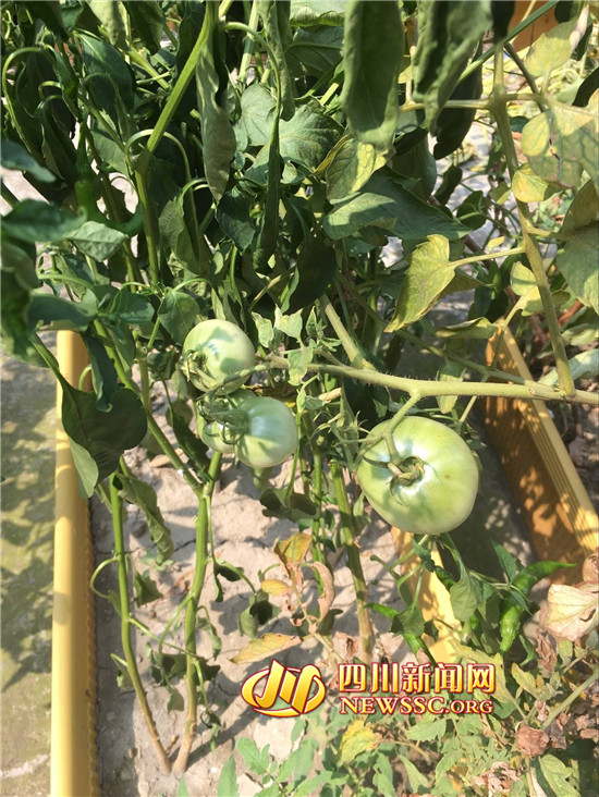 那么,“蔬菜社区”到底是什么样子呢?四川新闻网记者前往成都市肖家河街道永丰社区东二巷七号院一探究竟。记者看到,社区背后的空地以及车库顶上都种满了蔬菜。生机勃勃的小菜园里,苦瓜、西红柿等等蔬菜挂满枝头。社区居民李大爷开心地指着这些蔬菜告诉记者,“这就是我们社区25户人家集体种植的劳动成果。”