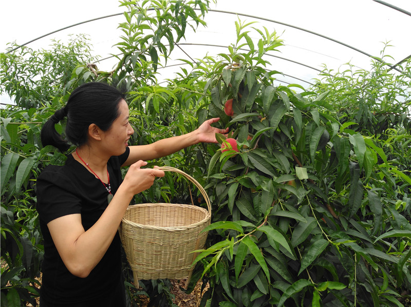 江海英在桃园采摘