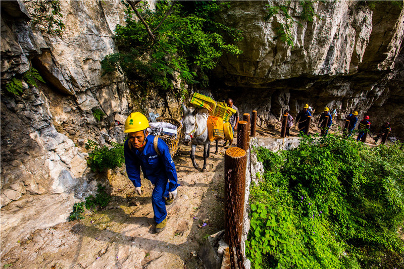 12日,通过人背马驼的方式运输施工器材——郝立艺摄
