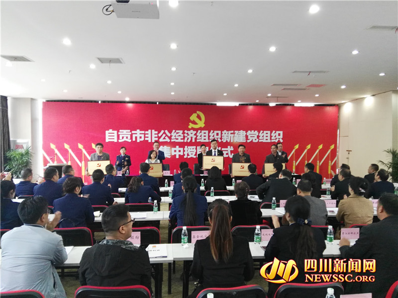 仪式上,中共四川省洛源食品有限公司支部委员会、中共自贡市帅旗房地产开发有限公司支部委员会等35个非公经济组织新建党组织集中接受了牌匾。
