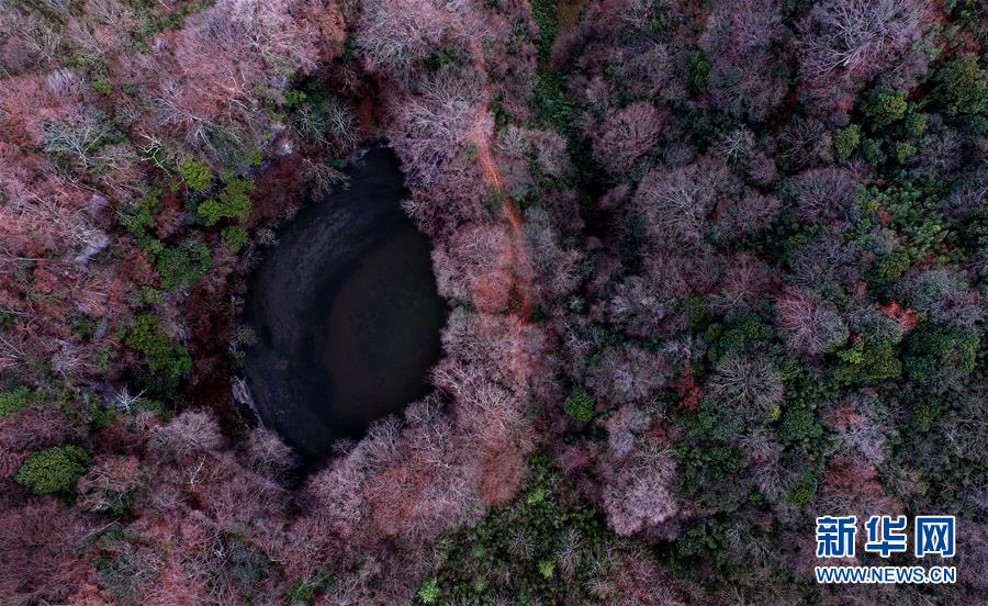 这是在陕西省汉中市镇巴县巴山林场附近拍摄的天坑景观(2016年12月3日摄)。汉中天坑群位于秦巴山区,是全球罕见的天坑群。