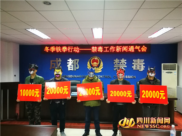 在通气会现场,成都警方通报了2017年第2期成都市群众举报涉毒违法犯罪奖励情况,并对今年下半年11名举报毒品案件、符合奖励条件的群众进行公开奖励。记者看到,前来领奖的五人中(其中一人代表7人团体)将九万元奖金领走。