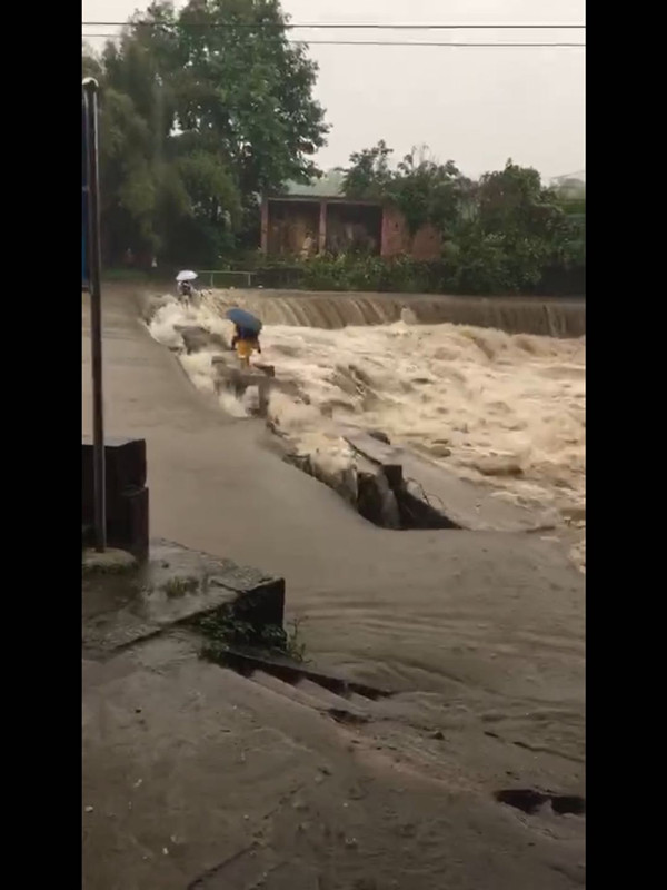 涨水淹了桥 村民冒险渡河