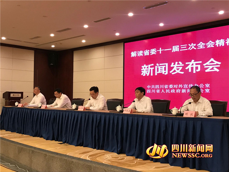四川新闻网成都7月2日讯(记者 戴璐岭 陈淋 摄影报道)中国共产党四川省第十一届委员会第三次全体会议,已于2018年6月29日至30日在成都举行。7月2日下午,解读省委十一届三次全会精神首场新闻发布会在成都举行。省委副秘书长、省委新闻发言人张道平作主发布,对全会精神进行了详细解读。