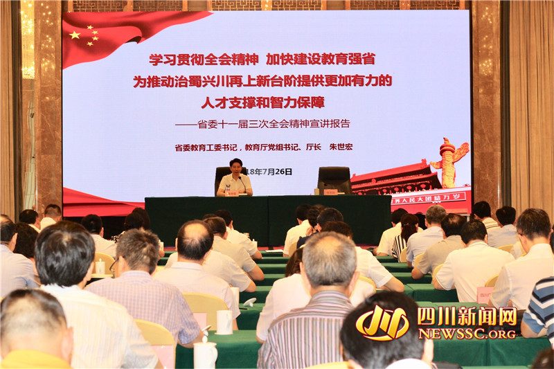 四川新闻网成都7月26日讯(记者 陈淋 摄影报道)根据省委关于学习宣传贯彻十一届三次全会精神的部署要求,7月26日上午,四川省委教育工委举行全会精神集中宣讲报告会,省委教育工委书记,省教育厅厅长、党组书记朱世宏做专题宣讲报告。