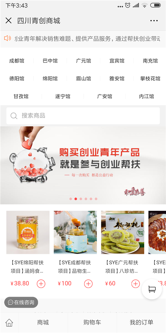 四川“青创商城”主页面(图据微信公众号“四川共青团”截图)