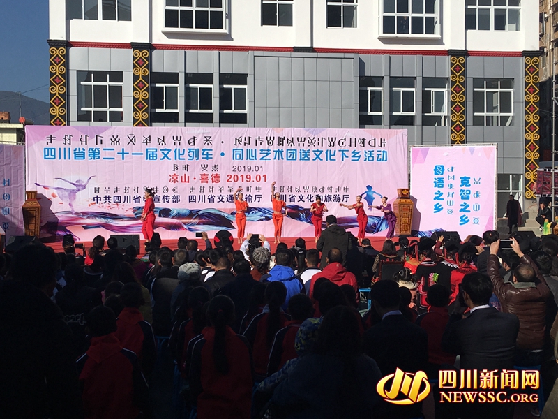当天,四川省第二十一届文化列车·同心艺术团送文化下乡的“文化列车”开进了凉山州喜德县,来自四川省曲艺研究院、四川艺术职业学院、四川人民艺术剧院、南充大木偶剧院以及凉山州当地的歌手、演员们用他们的表演,为“彝族老家”喜德县的群众带来了无数欢乐和感动。