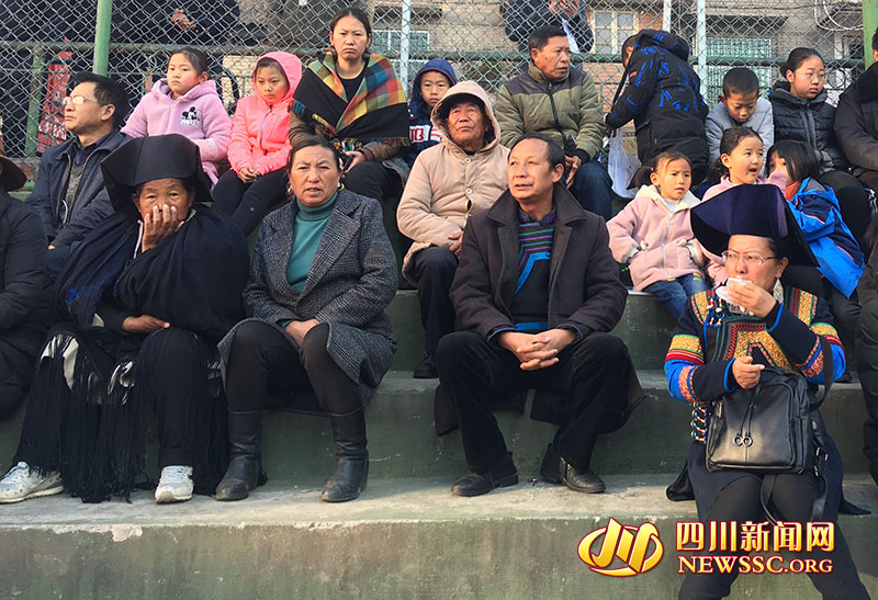 早上9点钟左右,马海伍来抵达喜德县灯光球场上的阶梯座位上,等待演出开始。
