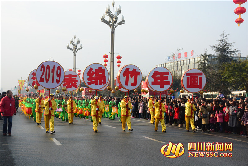 四川新闻网德阳1月28日讯(记者 周鸿 摄影报道)大红灯笼高高挂、五彩年画扮绵竹……1月28日,以“从小年到大年 到绵竹过中国年”为主题的第十八届绵竹年画节拉开帷幕。浩浩荡荡的巡游表演队伍再现了传统绵竹年画的“春官赐福”“老鼠嫁女”“骑车仕女”等场景,带着浓浓的年味儿。据悉,活动将持续到农历正月十五。