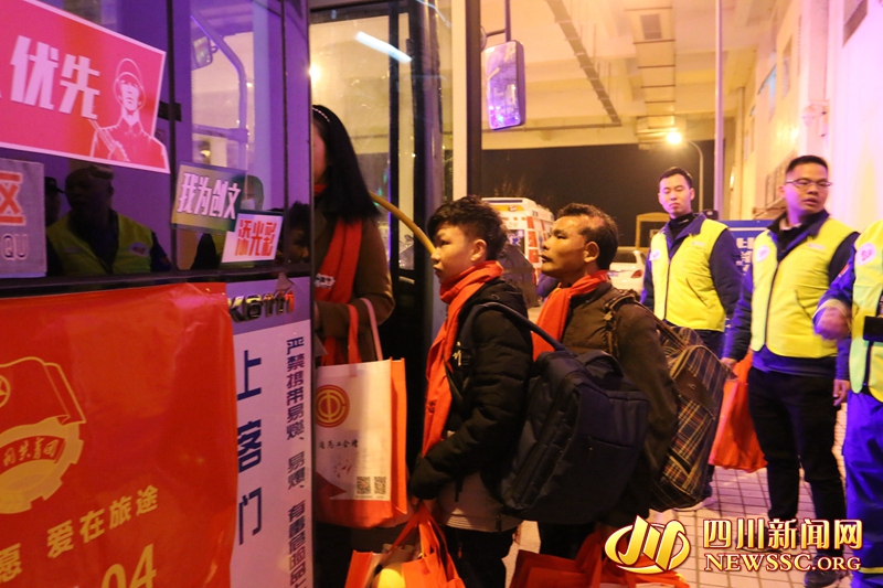 活动结束后,主办方组织了14辆公交车、客运大巴和30辆出租车免费将各地务工人员送回家。晚上11点的巴中寒气逼人,但这次旅途却让大家心里充满暖意。