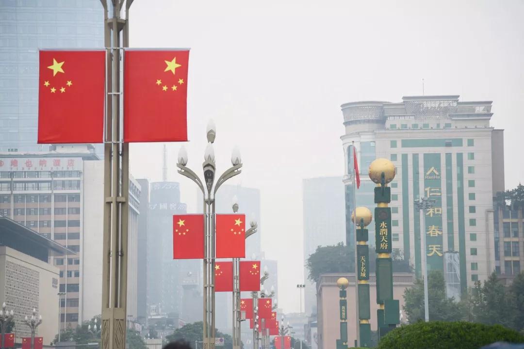 成都街头鲜艳的五星红旗(图据成都市城管委)