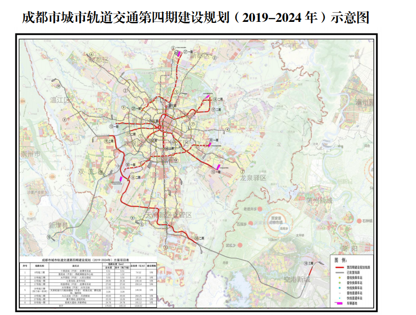 成都市城市轨道交通第四期建设规划(2019-2024 年)示意图(图据国家发展改革委官网)