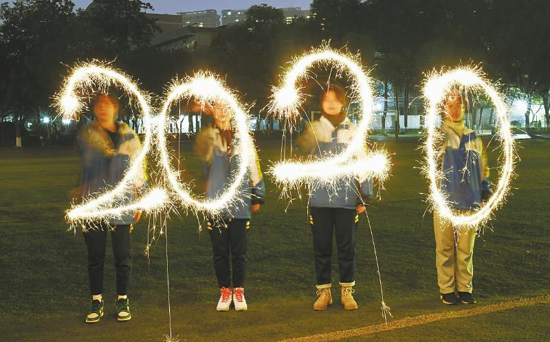 12月30日晚,成都市中和中学的学生在空中用烟花棒写出“2020”字样,迎接新年的到来。本报记者 李向雨 摄
