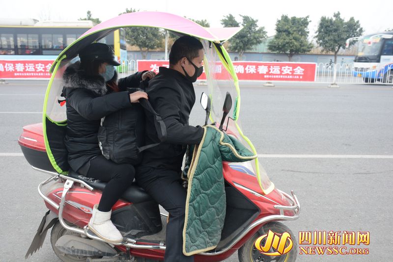 从火车站走出来的罗先生背着双肩包,拖着行李箱,满脸笑容,原来他的妻子来接他了。罗先生是德阳城区人,两年前去了西安工作,在一建筑工地打工。