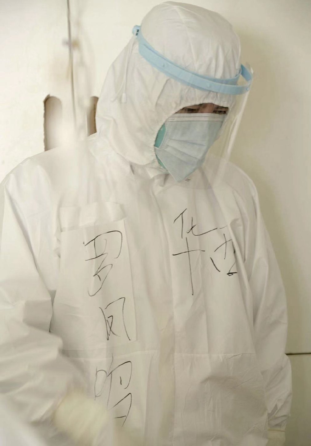 华西医院医生刘焱斌在武汉红十字医院隔离病房