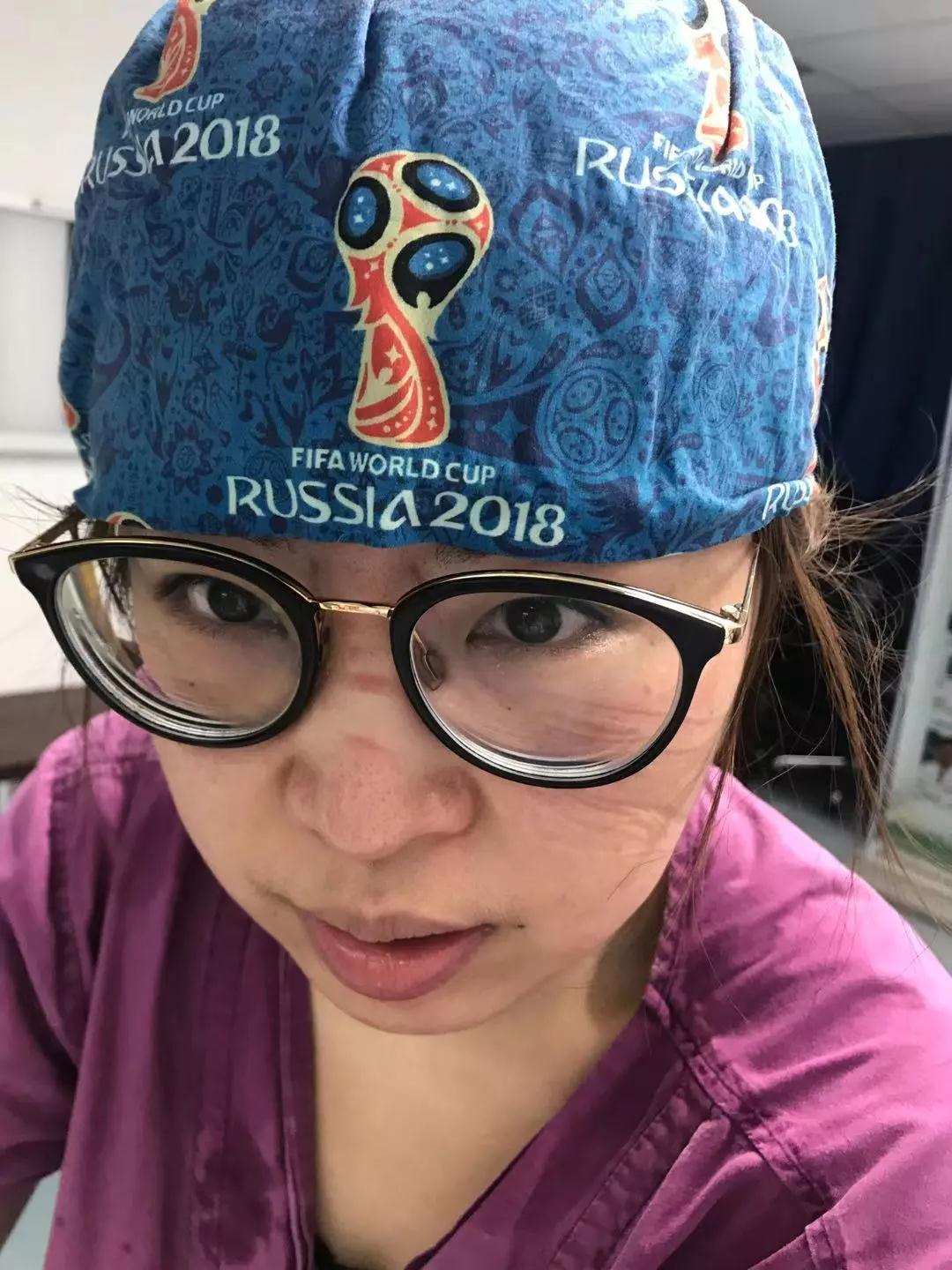 取下口罩大家相视一笑,口罩和护目镜的勒痕犹如深深的沟壑纵横在眼周,手部皮肤被汗水侵染得皱皱巴巴,手术衣后背的汗早已经被身体自行烘干。