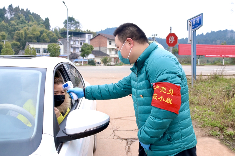 四川新闻网遂宁2月9日讯(记者 熊强)他,是遂宁市船山区“脱贫攻坚先进个人”;他,连续两年被街道评为“优秀共产党员”。面对突如其来的疫情,作为村支书的他,毅然挺身而出,组织党员群众,建“共产党员战疫小组”和“兰井村疫情防疫小组”,走在疫情宣传防控的第一线。他,就是遂宁市高新区西宁街道办兰井村村支部书记梅宇。每天,梅宇都戴着口罩、手提额温枪和体温登记本,奔走在村里的各个角落,奔走在各个疫情防控点。